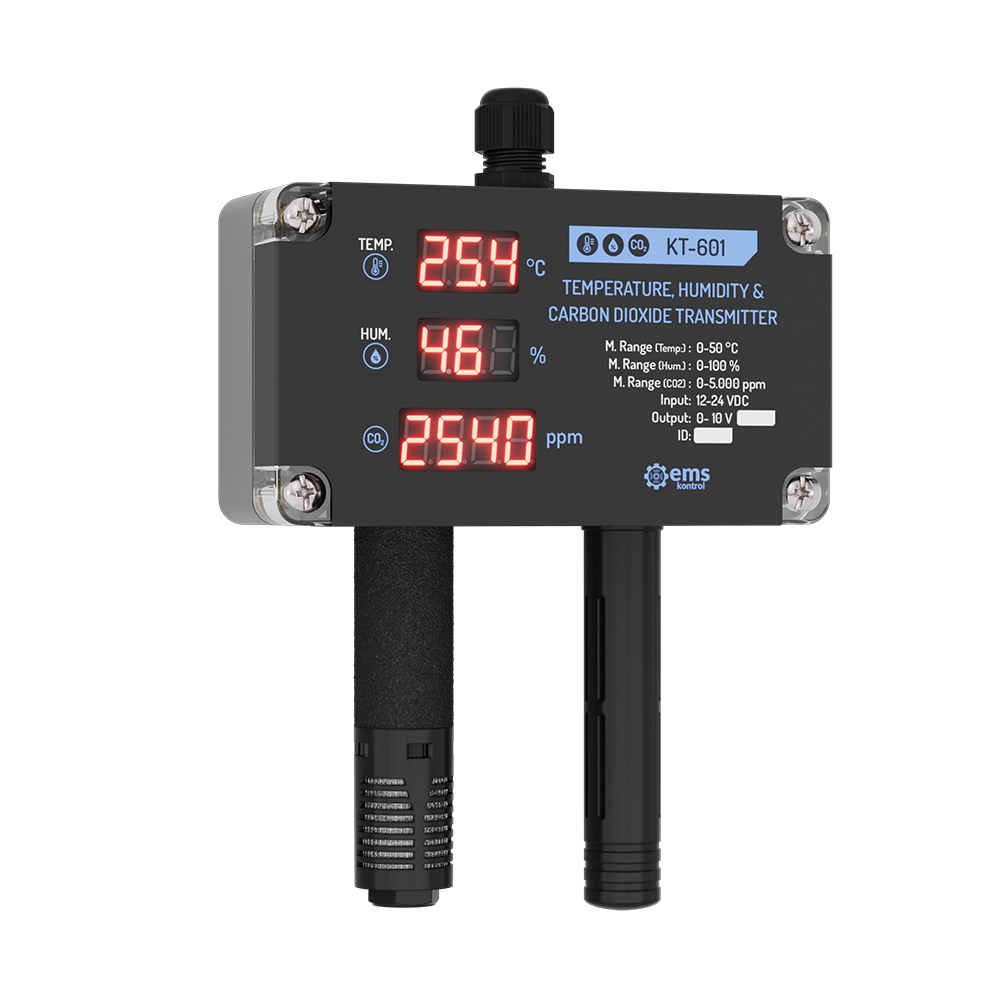 Carbon Dioxide SensorsHumidity SensorsTemperature SensorsIt precisely measures the temperature, relative humidity and carbon dioxide values in the environment and convert it into output signals in desired standards (0-10V, 4-20mA, Modbus RTU).