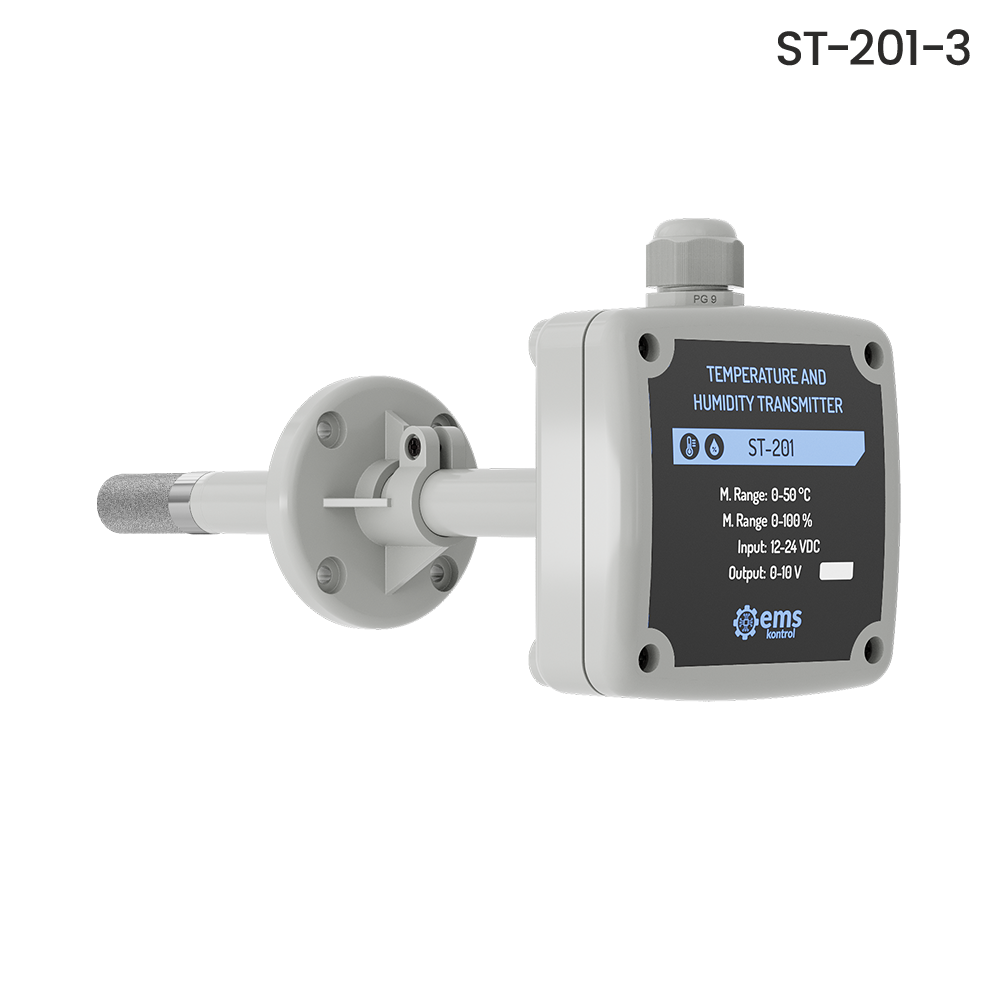 It precisely measures the temperature and relative humidity values in the environment and convert it into output signals in desired standards (0-10V, 4-20mA, Modbus RTU).